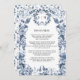 Wildflower Floral Blue and White Wedding Menu Invitation
