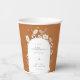 Wildflower Baby Shower paper cups. Colourful wildflowers arch frame, butterfly accent, chic dark grey typography and coordinating terracotta orange colour background.