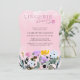 Wildflower lingerie bridal shower invitation with a floral border of wild flowers in pink lilac yellow and blue. The design sits on a pretty pink background with soft haze of white watercolor wash. If you would like matching products, please browse my Wildflower Lawn collection or message me to add the design templates you need.