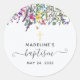Lovely watercolor wildflowers and a gold cross top this baptism round sticker. The flowers are hand drawn and they have a pretty meadow look to them that everyone loves. Faux watercolor paper texture really makes them stand out. Caligraphy typography adds to the great style. See our coordinating items as well.