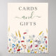 This sweet and simple party table sign is perfect for any nature themed party or shower. The design features the title "Cards and Gifts" in a charming script and serif font and the bottom of the signage is adorned with a beautiful field of hand painted watercolor wildflowers, adding a touch of color and whimsy. This poster print is fully customizable with your own wording, making it a truly unique way to decorate your special day and is sure to impress your guests and set the tone for a beautiful and memorable celebration.
