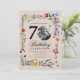 An elegant "70th Birthday" party invitation design with personalised photo, modern typography and wildflower motif.