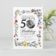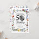An elegant "50th Birthday" party invitation design with personalised photo, modern typography and wildflower motif.