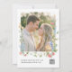 Celebrate your love story with this elegant wildflower wedding invitation featuring a romantic watercolor floral border and a customizable photo on the back. Soft blush, blue, and yellow blooms frame the front design, creating a timeless garden-inspired look that feels both refined and fresh. Classic serif typography paired with graceful script adds sophistication and balance to your wedding details.