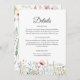 Introducing the Wildflower Meadow Wedding Details Enclosure Card, the perfect addition to your wedding invitation suite. This card provides all the essential information for your guests, including wedding details, accommodation options, and a website link for further information. The front of the card features watercolor wildflowers, poppies, herbs, and daisies in a meadow-like arrangement.