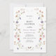Beautiful wildflower-themed baby shower invitation features a watercolor border of wildflowers and butterflies. Personalise with your information or click "Click to customise further" to edit font styles, size and colours.