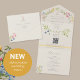 A soft and romantic wildflower all-in-one wedding invitation designed in warm ivory tones with watercolor floral illustrations. Perfect for spring, summer, garden, rustic, or nature-inspired weddings, this invitation combines charm, flexibility, and eco-friendly functionality.