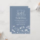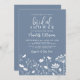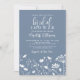 Simple Wildflower Boho Bridal Shower Invitation. Perfect for spring through autumn celebrations, this minimalist design features a dusty blue background on both the front and back for a calm, timeless look. A simple white outline wildflower art border sits along the bottom, creating a clean blue-and-white palette that feels elegant, modern, and subtly cute.