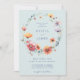 This design features a delicate watercolor wreath made of wildflowers in shades of blue, red, orange, violet, and gold. Perfect for spring and summer outdoor weddings.