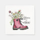 A vibrant pink boot overflowing with blooming flowers and greenery, paired with the phrase “Bloom & Grow”, symbolising resilience, growth, and beauty in unexpected places.