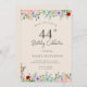 Adult Birthday Invitations | Rustic Beige floral Elegant 44th Invitations