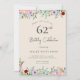 Adult Birthday Invitations | Rustic Beige floral Elegant 62nd Invitations