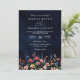 Wildflower Rustic Boho Navy Chic QR Code Wedding Invitation