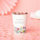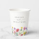 Celebrate your love story with this elegant floral wedding paper cup featuring a charming watercolor wild flower design and modern calligraphy script. Perfect for a garden wedding, outdoor ceremony, or rustic boho celebration, this design blends whimsical floral elements with timeless elegance. Ideal for summer or spring weddings, the vibrant botanical artwork and personalised layout make it easy to customise with your event details. Whether you're hosting a romantic outdoor wedding or a vintage-inspired celebration, design sets the perfect tone. Easily personalise to make it truly yours