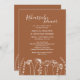 Terracotta Burnt Orange Wildflower Wedding Rehearsal Dinner with simple linear floral design. Delicate botanical theme with wild flower border in white line art and elegant handwritten script typography. Please browse my Wildflower Sketch collection for matching items.