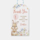 Sweet bunny themed birthday thank you tag featuring a furry bunny, a balloon and various wildflowers. Suitable for any age.