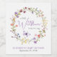 Elegant wine label for your baby girl shower featuring "a little wildflower is on her way" in modern grey typography and a chic lavender purple script, a boho-inspired watercolor wreath of purple, pink, peach and yellow wildflowers, and a purple butterfly. Add the mother's name and shower date in simple lavender and grey typography.