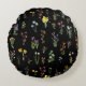 Wildflower Watercolor Black Botanical Floral Round Cushion
