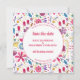 A watercolor painting of flowers and leaves in rich colours scattered on a white background. A gorgeous coordinating Save the Date invitation which you can alter to suit your own celebration. Original art by Nic Squirrell.