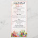 Celebrate your special day with this charming watercolor wildflower wedding dinner menu. Featuring vibrant spring garden florals and a soft splash of watercolor at the bottom, this elegant vertical layout beautifully displays your appetizers, main course, desserts, and beverages. Perfect for outdoor, vineyard, garden, or rustic weddings, this menu design pairs effortlessly with our matching wedding invitations, RSVP cards, signage, and other stationery. Personalise with your own menu details and wedding date to add a polished and cohesive touch to your reception tables. Ideal for seated dinners, cocktail receptions, and buffet-style celebrations. A timeless keepsake that guests will adore!