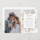 A wildflower save the date card with pretty watercolor floral graphics in soft blue, pink, yellow and green tones and a modern font. There is space to add your photo and these stylish cards are the perfect way to let family and friends know your wedding date. Pair with anything in the ELODIE collection for a cohesive look. The design has been featured on Wedding Sparrow.