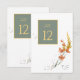 This elegant wedding collection uses a striking colour palette, including gold flake, burnt orange and sage green, to create matching stationery and party supplies for your special day. Watercolor florals and sparkling paint strokes provide eye-catching backgrounds. Handwritten script paired with a classic serif font lend a modern touch. The wedding 'Table Number' card shown here provides a sage green frame and a template to easily add your own number, initials and wedding date. Search ID954 to see other pieces and colour choices for this set.