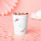 This elegant wedding collection uses a striking colour palette, including fuchsia fedora, lime green and cotton candy pink, to create matching stationery and party supplies for your special day. Watercolor florals and sparkling paint strokes provide eye-catching backgrounds. Handwritten script paired with a classic serif font lend a modern touch. The wedding paper cup shown here with a floral border, provides a template to easily add your own names and wedding date. Search ID954 to see other pieces and colour choices for this set.