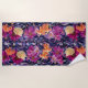 Colourful wildflowers of orange, yellow, purple, and blue on a bed of whimsical and glittery stones makes this such a pretty beach towel!