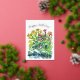 A Birthdaycard with a beautiful watercolor painting of wildflowers and a pied wagtail. Wagtails are cheerful and friendly and greet happily your best friend or your sister, mum or grandmother, or anybody you want to send happy greetings to! You can personalise the front and the message inside.
