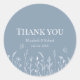 This wedding Thank you sticker with white hand-drawn wildflowers and butterflies on a dusty blue background is a great choice for decorating your favours on a boho outdoor or backyard summer wedding.