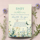 Invite friends and family to celebrate the arrival of a sweet baby with this elegant spring wildflower baby shower invitation, featuring watercolor wildflowers in hues of twilight blues and verdant green.