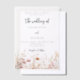 A transparent background. Decorated with wildflowers in beige, cream and pink. Personalise and your names and details.