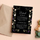 The "Wildflowers Black Wedding Details Enclosure Card" is designed to provide essential information with style and elegance. Featuring delicate wildflowers against a sleek black backdrop, this card beautifully complements your wedding suite while offering a modern yet nature-inspired touch. Perfect for sharing venue details, accommodations, or itinerary, it ensures your guests have everything they need for your special day. Crafted from high-quality materials, this card blends practicality with stunning design for a lasting impression.