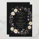 Bold wildflowers and wild greenery intertwine to form a sumptuous floral wedding wreath on this modern, elegant black and white wedding invitation that features real gold foil accents on some of the flowers and in the first names of the couple. An elegant, timeless design for the modern romantic, this floral invitation combines the black and white formal theme with the feminine and playful wildflowers aesthetic for the perfect blend of sophisticated elegant.
