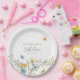 Delicate wildflowers meadow bouquet and butterflies with pastel watercolor floral blooms elegant chic spring or summer garden love in bloom bridal shower personalised paper plates with whimsical elegant modern calligraphy script over a white background.