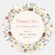 This is an elegant and summery round thank you sticker. The design features a colorful and summery halo of delicate wildflower florals in pretty shades of blue, terracotta, pink, rust, purple and yellow. The butterflies and bees add the finishing whimsical and pretty touch.