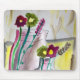 Art frpm an original watercolor painting of colourful wildflowers in a glass vase in simple abstract line art. Simple and unique whimsical art.