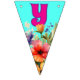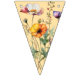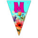 Celebrate Mum with this unique bunting banner decor. Wildflowers decorate every flag with lettering that spells out "love you mum" in bright pink letters. Other colours are aqua blue, yellow and pastels for the flowers. You may also choose the swallowtail shaped flags, but the design fits best on the triangles. Use for her birthday or Mother's Day, or to celebrate an accomplishment.