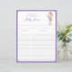 This recipe sheet design features dainty pink, yellow and purple watercolor wildflowers in a mason jar vase on a purple background. Click the customize button for more flexibility in modifying the text. Variations of this design, different paper types, as well as coordinating products are available in our shop, zazzle.com/store/doodlelulu. Contact us if you need this design applied to a specific product to create your own unique matching item! Thank you so much for viewing a DoodleLulu by 2 june bugs design!