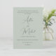 Beauty & Elegance at its best were used to create this very formal timeless design with formal typography. Sage green background. The bride & groom names are done in fancy script. The beauty of this invitation is in its simplicity. Just breath taking. A perfect invite for any season.
