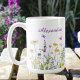 Bring a touch of nature to your morning routine with our Wildflower and Butterflies Custom Name Mug. This beautifully designed ceramic mug features a delicate arrangement of watercolor wildflowers paired with vibrant and whimsical butterflies, creating a serene and cheerful aesthetic - like a spring or summer meadow. The design wrap around the mug. Personalise it with your name front and back or a loved one’s for a truly unique gift that feels special and thoughtful.