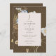 Announce your wedding with a touch of rustic elegance. Our captivating wedding invitation features a vibrant arrangement of wildflowers and ferns, meticulously hand-drawn and reminiscent of pressed botanical treasures. Rich colors like tan, yellow, cream, blue, and sage green stand out beautifully against a rich chocolate brown background frame. Your wedding details are showcased in a crisp cream text box, ensuring clarity and elegance. This captivating design captures the essence of a wildflower meadow, offering a unique and memorable way to celebrate your love story. Created by Simply Farmhouse Press.