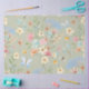 Celadon sage background with hints of mint and a beautiful wildflower bouquet with blue butterflies and bees and tossed individual flowers bring the beauty of the spring and summer garden into your home decor. Every element of this design was painted and graphically designed by internationally licensed artist and designer, Audrey Jeanne Roberts, copyright.