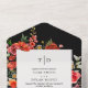 Wildflowers Poppy Red Floral Dark Wedding RSVP All In One Invitation
