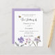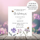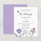 A white background. Decorated with bees and painted wildflowers in violet and pink. Personalise and add your names and the details.