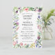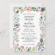 Elegant wildflowers white wedding invitation with a mix of a script and formal font. The design features pretty flowers, green leaves, and butterflies. Personalise the back with the couple's initials or leave it blank. Ideal for a floral or greenery spring or summer wedding.