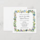 The watercolor wildflowers and greenery frame in this square wedding invitation is colourful with pink, blue, yellow, purple, and greenery.