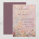 Wildflowers Watercolor Floral Wedding Invitation designed on a background of pastel coloured wildflowers in shades of soft pink, purple, green and yellow. The front text includes: the Bride and Groom's Names in lower case large script font, and the Bride and Groom's Full Names, along with the Wedding Date, Time, and Location. The reverse side is a matching soft purple background. To personalise, simply insert your details into our easy template, replacing the sample text.