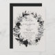 Bold wildflowers and wild greenery, painted in black ink over an ivory white background, intertwine to form a sumptuous floral wedding wreath on this modern, elegant black and white wedding invitation. An elegant, timeless design for the modern romantic, this floral invitation combines the black and white formal theme with the feminine and playful wildflowers aesthetic for the perfect blend of sophisticated elegant.