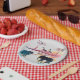 With wildlife art featuring elephants and giraffes at sunset. Perfect for a wildlife event, safari, animal themed party this African wild animals design was created from my original glass painting. ©Annabel Potter
